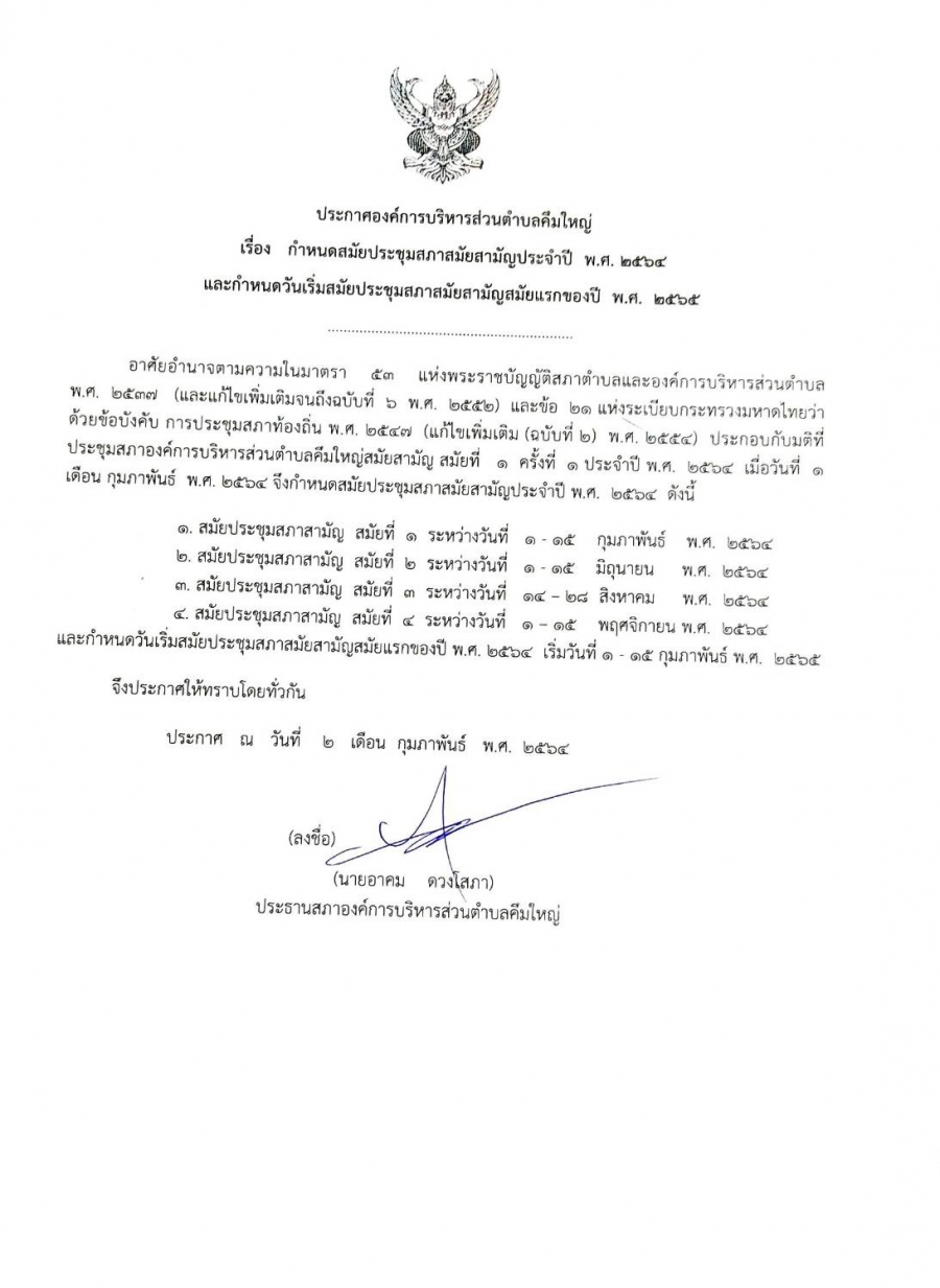 ประกาศกำหนดสมัยประชุมสภา อบต.คึมใหญ่ ประจำปี พ.ศ. 2564 Print Email ประกาศกำหนดสมัยประชุมสภา อบต.คึมใหญ่ ประจำปี พ.ศ. 2564 back to top