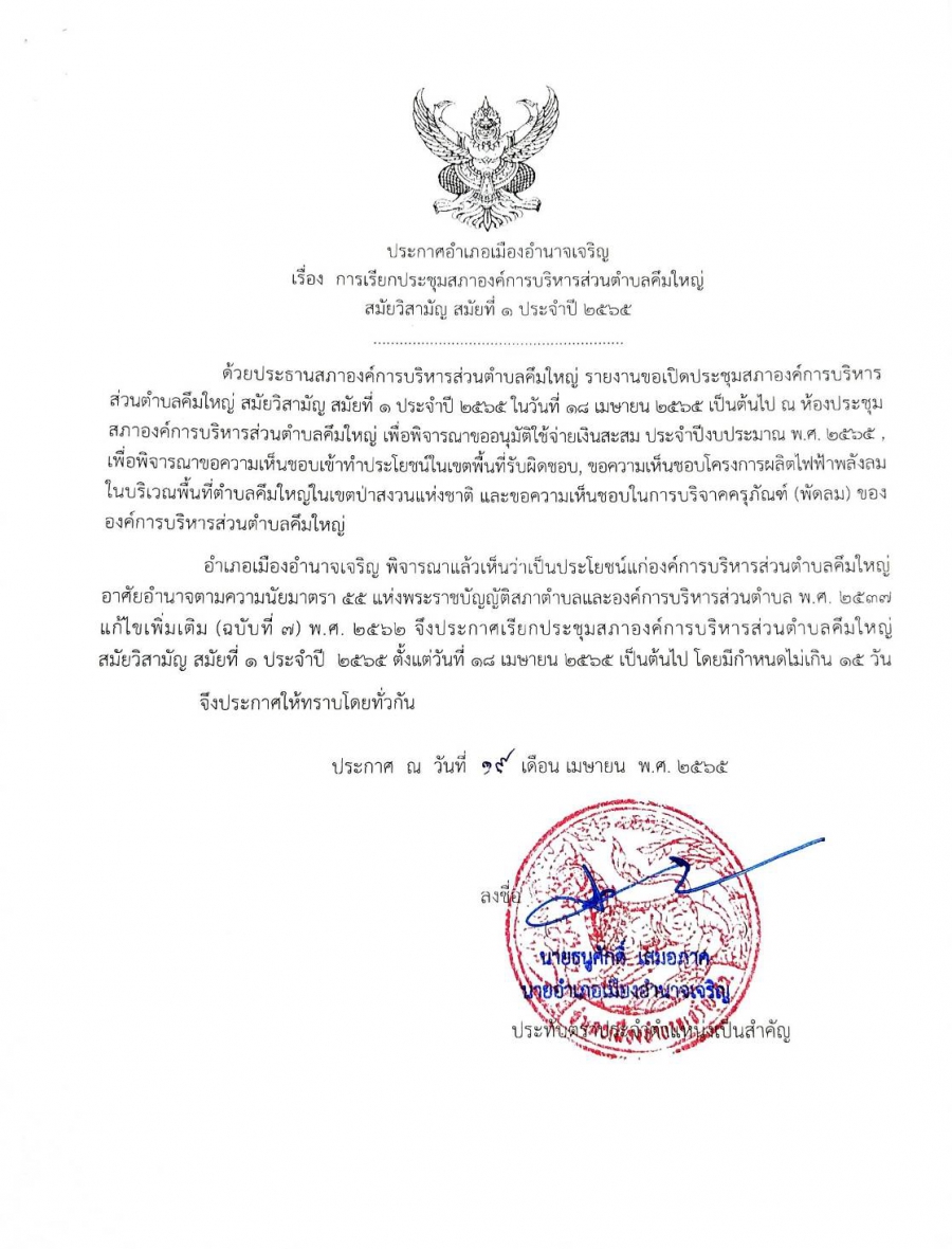 ประกาศเรียกประชุมสภา อบต.คึมใหญ่ สมัยวิสามัญ สมัยที่ 1 ประจำปี พ.ศ. 2565 Print Email ประกาศเรียกประชุมสภา อบต.คึมใหญ่ สมัยวิสามัญ สมัยที่ 1 ประจำปี พ.ศ. 2565 back to top
